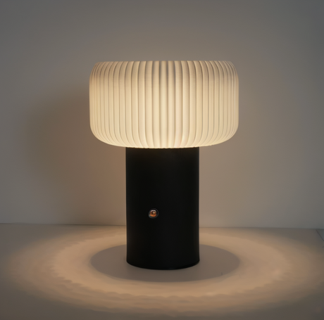 NordicGlow Bordslampa – Elegant Ribbad Lampa i Svampform